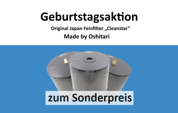 Anlässlich unseres 2. Geburtstages freuen wir uns, Ihnen unsere Feinfilter „Cleanstar“ von Oshitari zu Sonderkonditionen anbieten zu können.