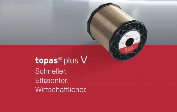 topas® plus V arbeitet bis zu 10 % schneller gegenüber topas® plus 2.0 und bis zu 45% gegenüber Blankdraht mit optimierten Technologien.