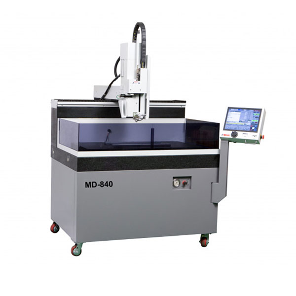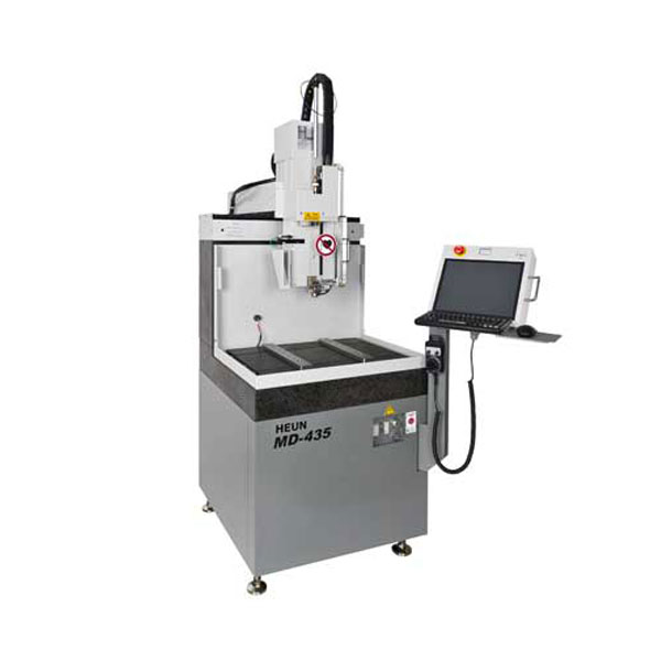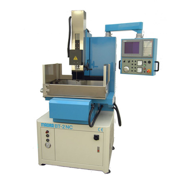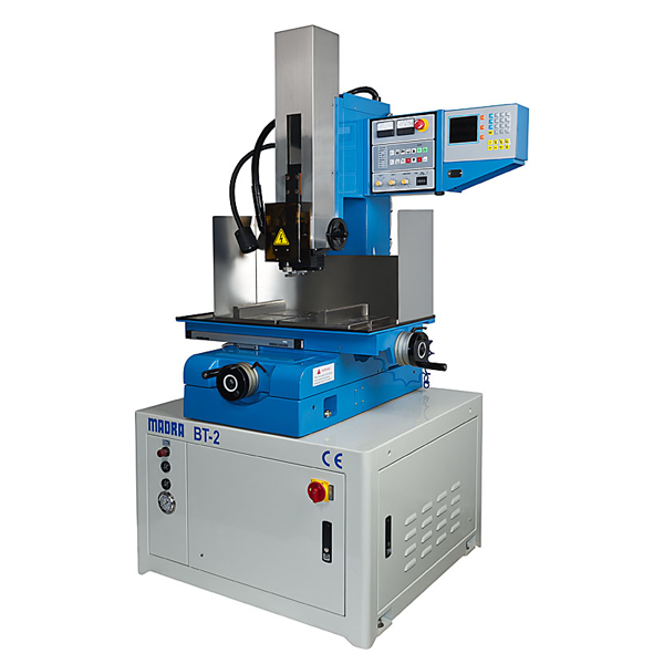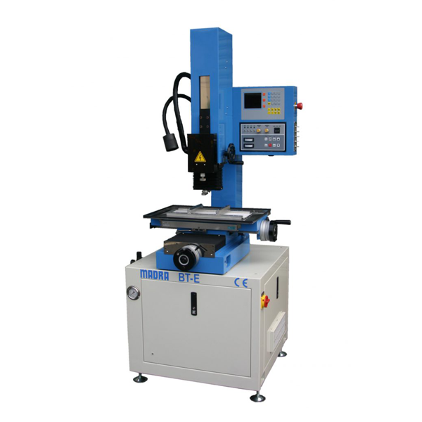 Funktionen: automatischer Vorschub, einstellbare Tiefenabschaltung, auswählbare Impulszeit, schwenkbarer Arbeitskopf, automatischer Rückzug, Meldungen: Tiefe erreicht, Erodieren ein, Überhitzungsschutz